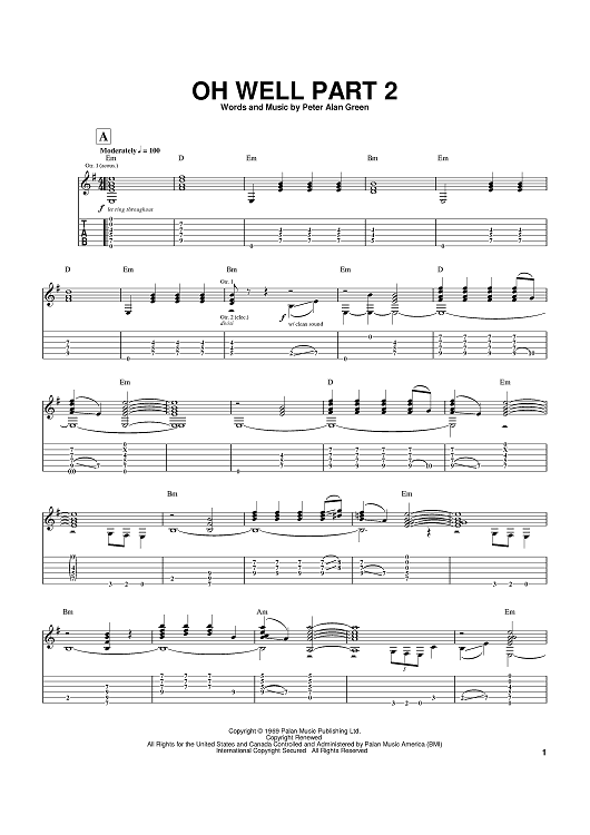 Digital Sheet Music for Oh Well Part 2 by Peter Green scored for Guitar Tab; id:370296