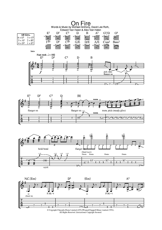 Digital Sheet Music for On Fire by Eddie Van Halen, David Lee Roth, Michael Anthony, Alex Van Halen, Van Halen scored for Guitar Tab; id:389316
