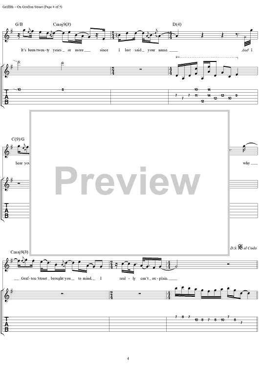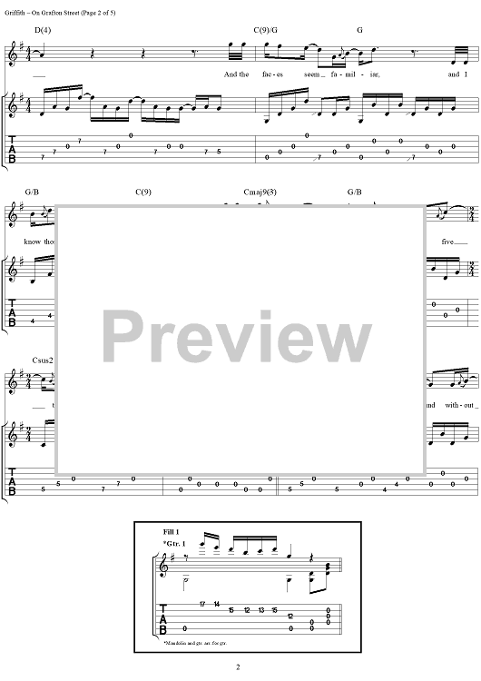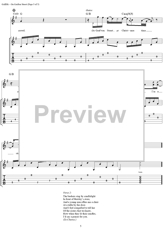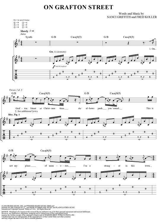 Digital Sheet Music for On Grafton Street by Fred Koller, Nanci Griffith scored for Guitar Tab/Vocal; id:112342
