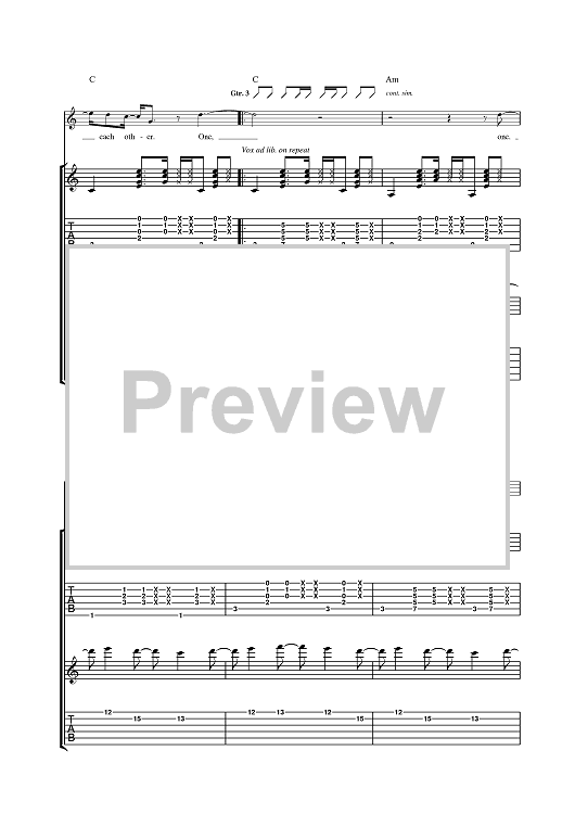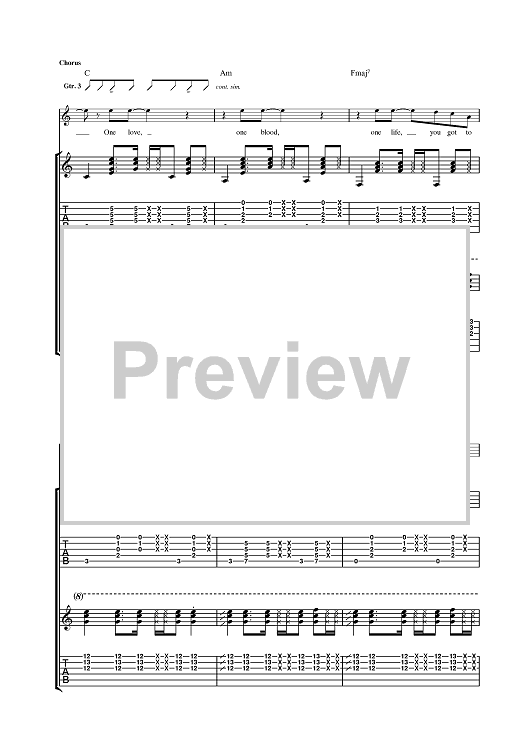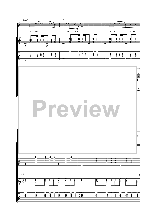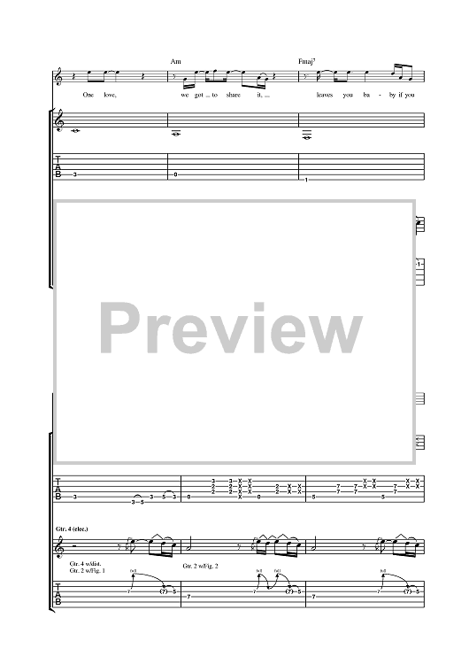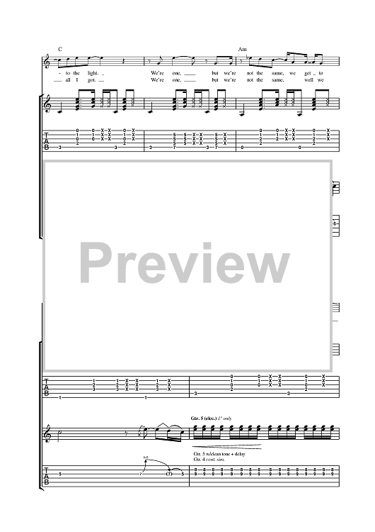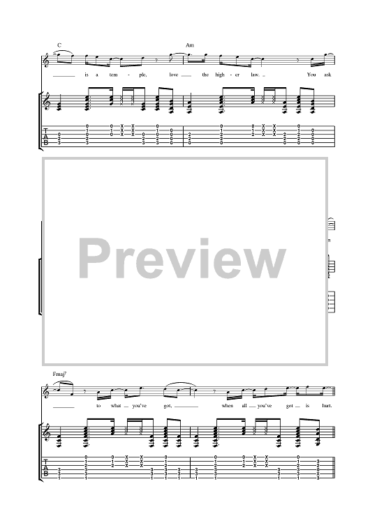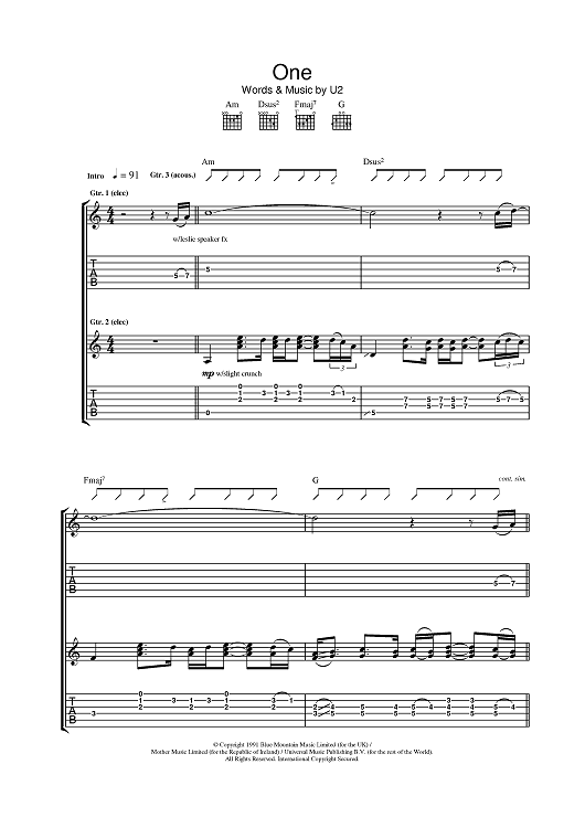 Digital Sheet Music for One by Johnny Cash, U2 scored for Guitar Tab; id:375819