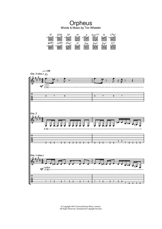 Digital Sheet Music for Orpheus by Ash, Tim Wheeler scored for Guitar Tab; id:381314