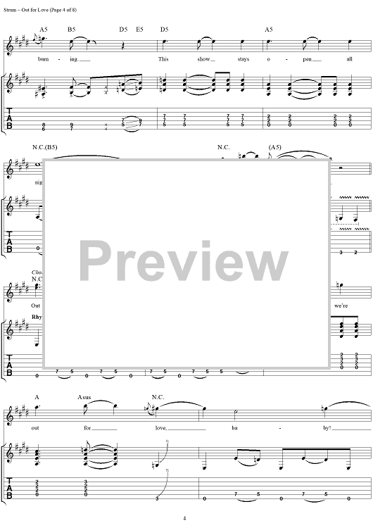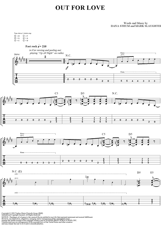 Digital Sheet Music for Out For Love by Slaughter, Dana Strum, Mark Slaughter scored for Guitar Tab/Vocal; id:131709