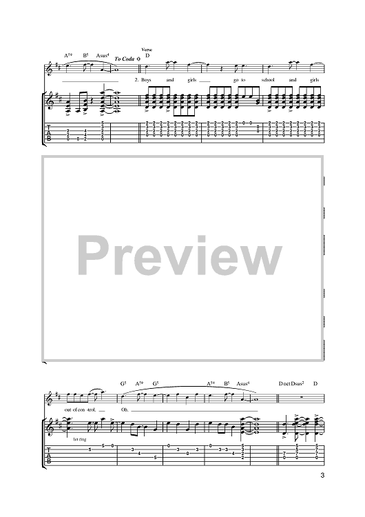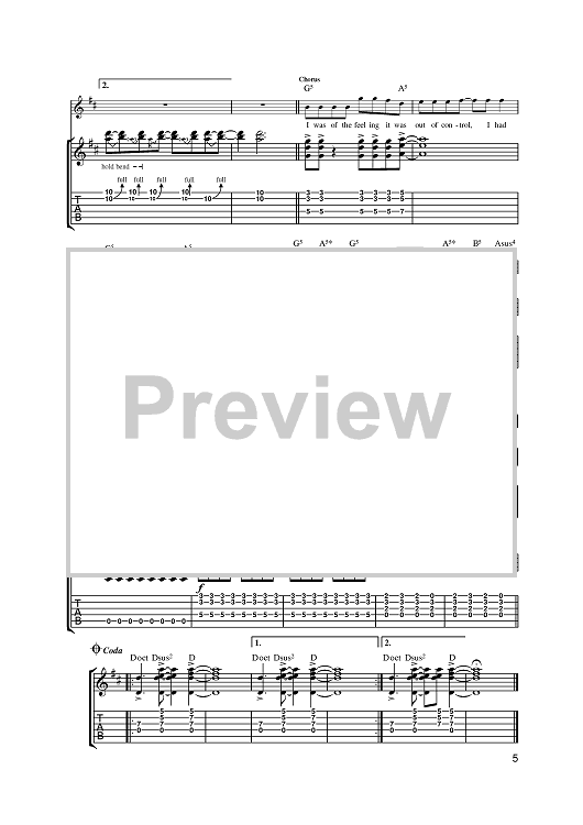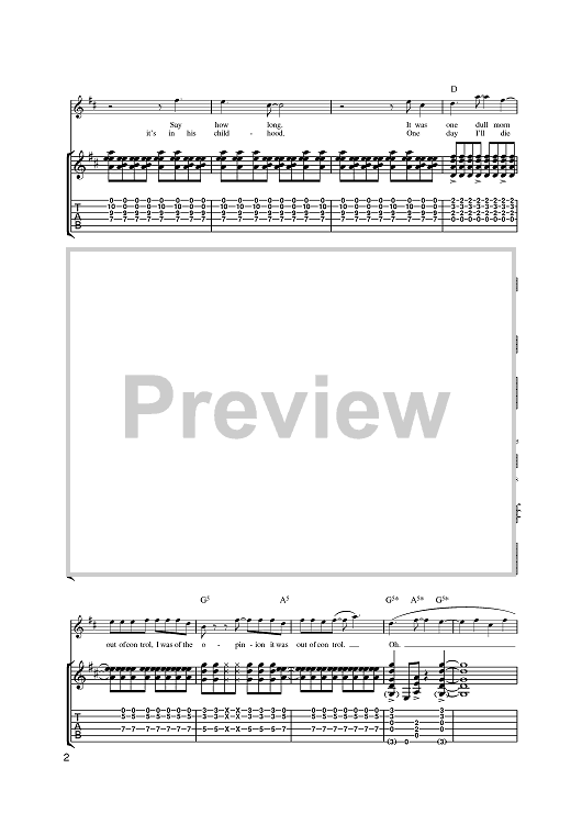 Digital Sheet Music for Out Of Control by U2 scored for Guitar Tab; id:383934