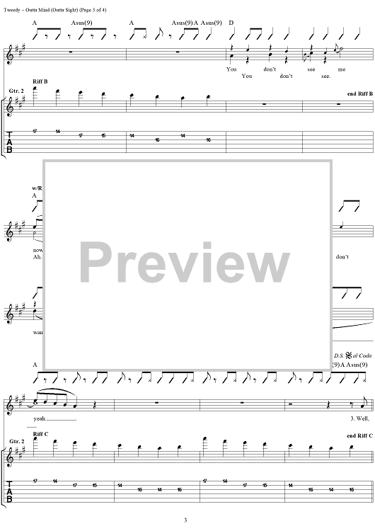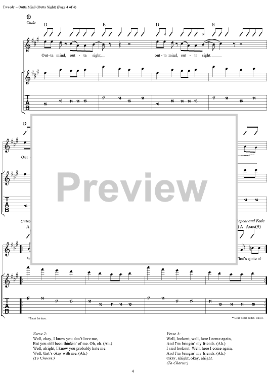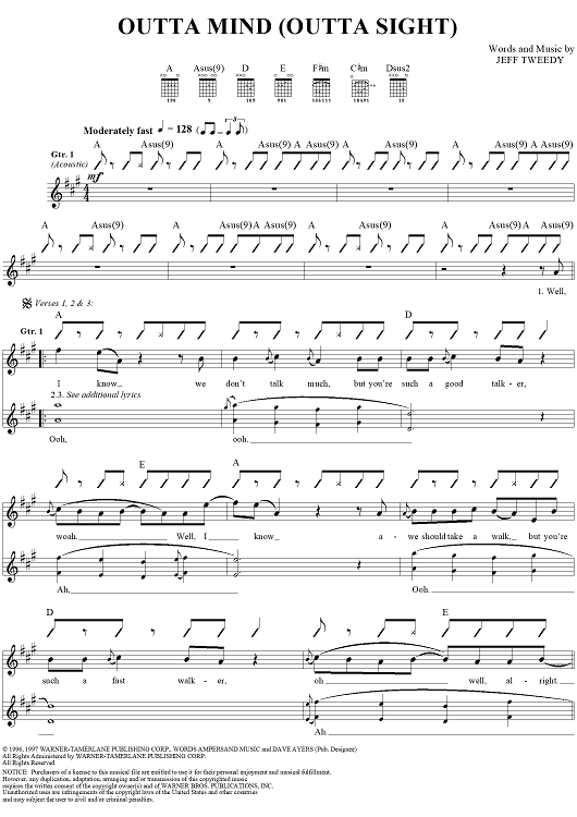 Digital Sheet Music for Outta Mind (Outta Sight) by Wilco, Jeff Tweedy scored for Guitar Tab/Vocal; id:262242