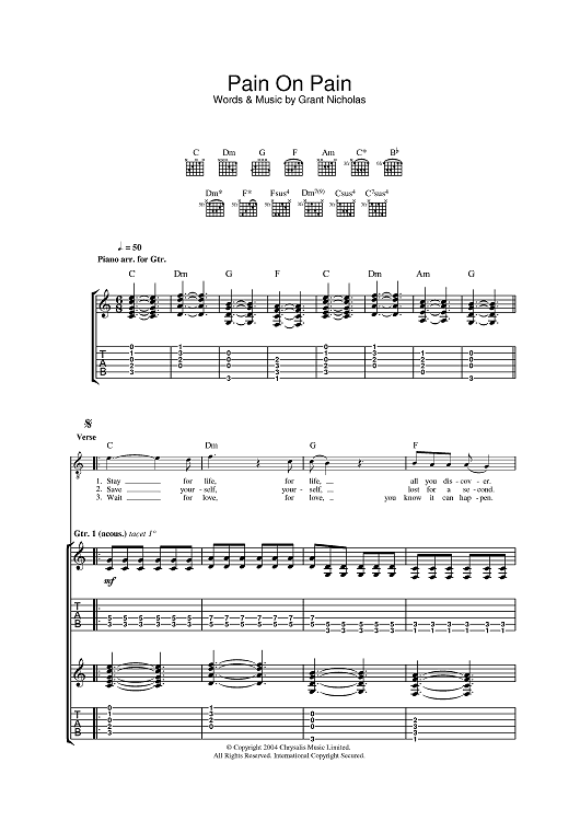 Digital Sheet Music for Pain On Pain by Feeder, Grant Nicholas scored for Guitar Tab; id:383412