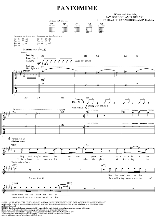 Digital Sheet Music for Pantomime by Orgy, Jay Gordon, Amir Derakh, Bobby Hewitt, Ryan Shuck, P. Haley scored for Guitar Tab/Vocal; id:187348