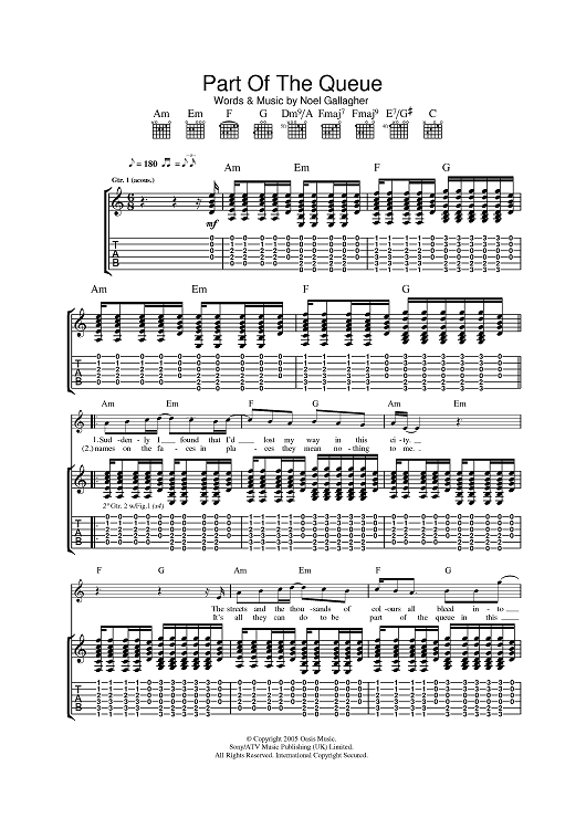 Digital Sheet Music for Part Of The Queue by Noel Gallagher, Oasis scored for Guitar Tab; id:387465