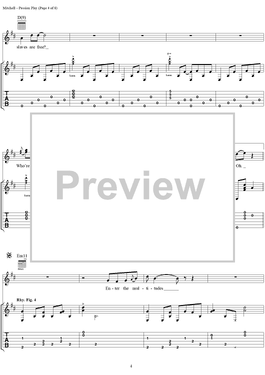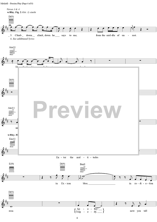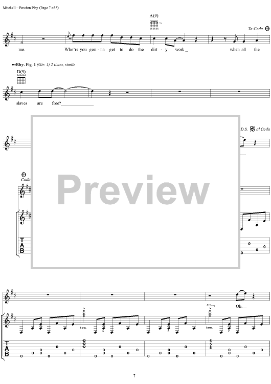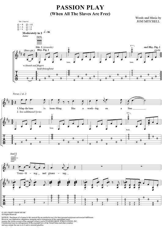 "Passion Play (When All the Slaves Are Free)" Sheet Music by Joni Mitchell