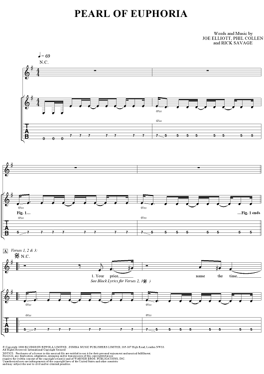 "Pearl of Euphoria" Sheet Music by Def Leppard