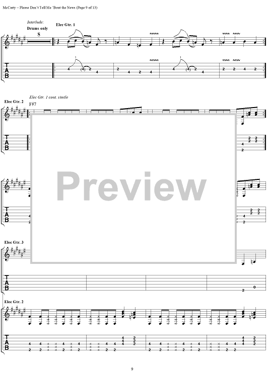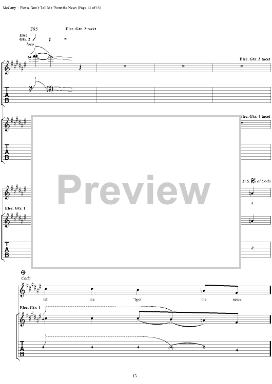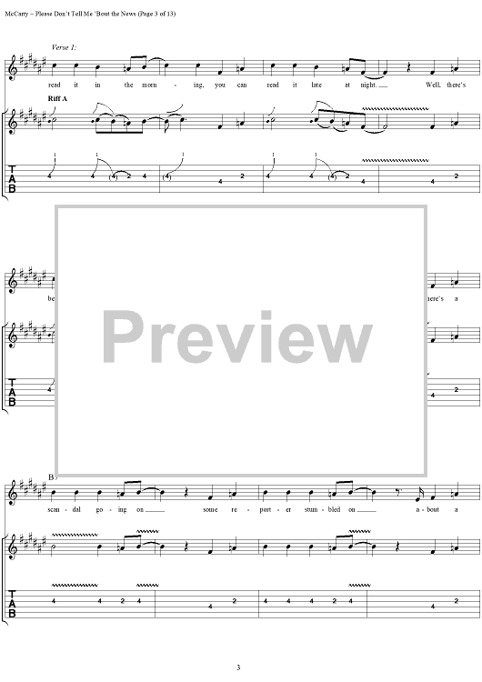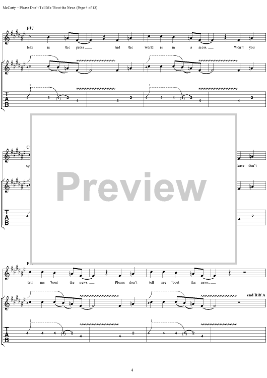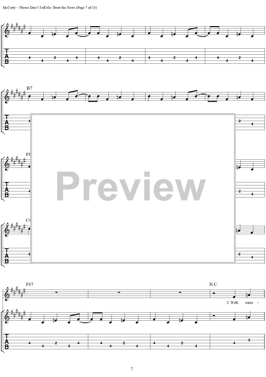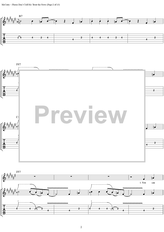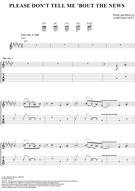 Digital Sheet Music for Please Don't Tell Me 'Bout the News by Yardbirds, James McCarty scored for Guitar Tab/Vocal; id:304226