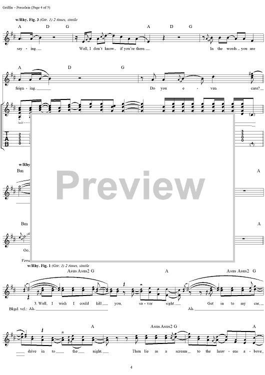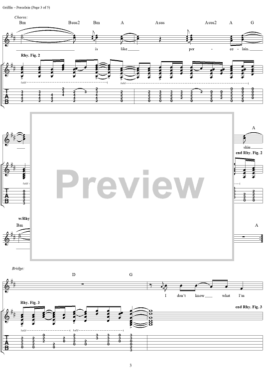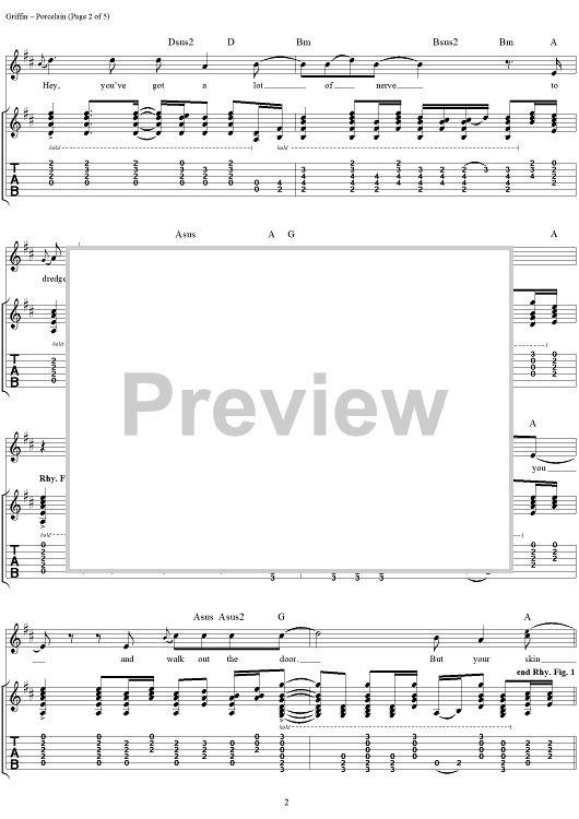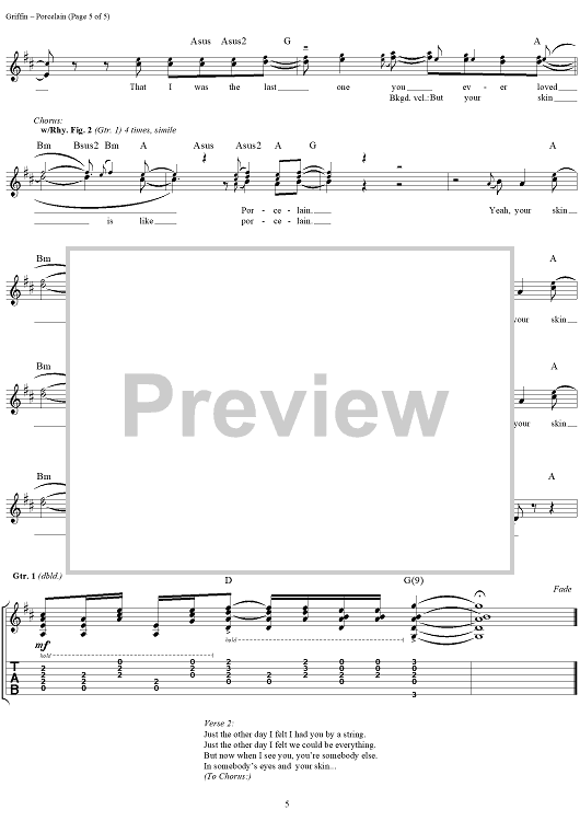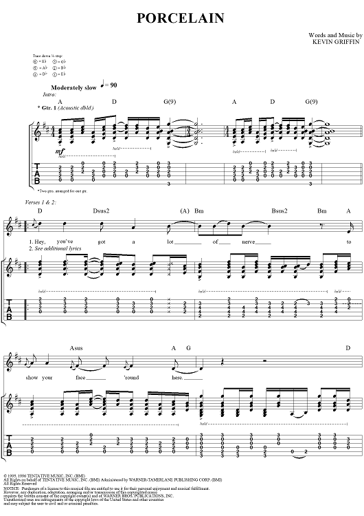 Digital Sheet Music for Porcelain by Better Than Ezra, Kevin Griffin scored for Guitar Tab/Vocal; id:267539