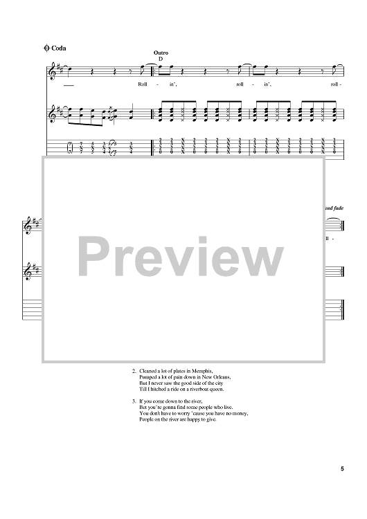 "Proud Mary" Sheet Music by Creedence Clearwater Revival