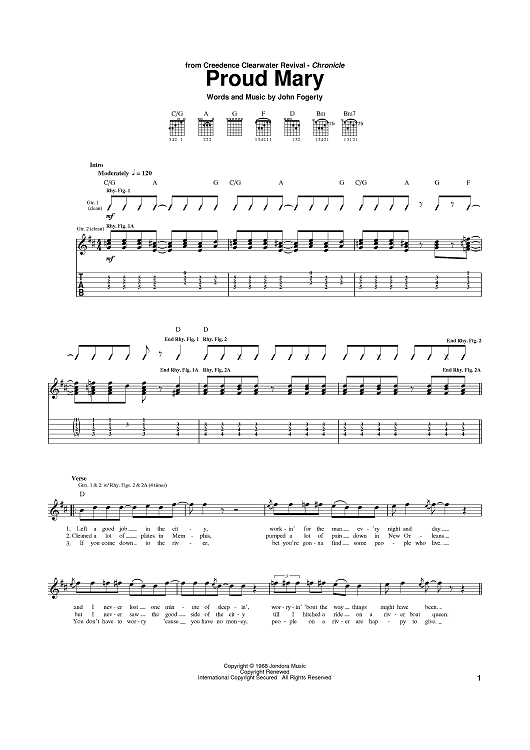 Digital Sheet Music for Proud Mary by Tina Turner, John Fogerty, Creedence Clearwater Revival, Ike & Tina Turner scored for Guitar Tab; id:389473
