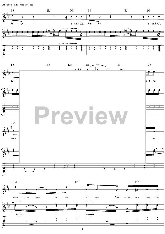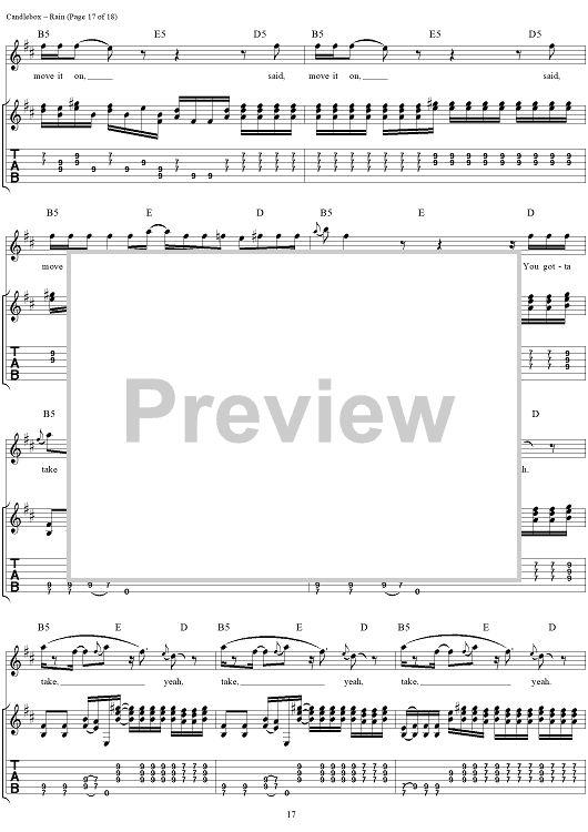 Digital Sheet Music for Rain by Candlebox, K. Martin scored for Guitar Tab/Vocal; id:273852