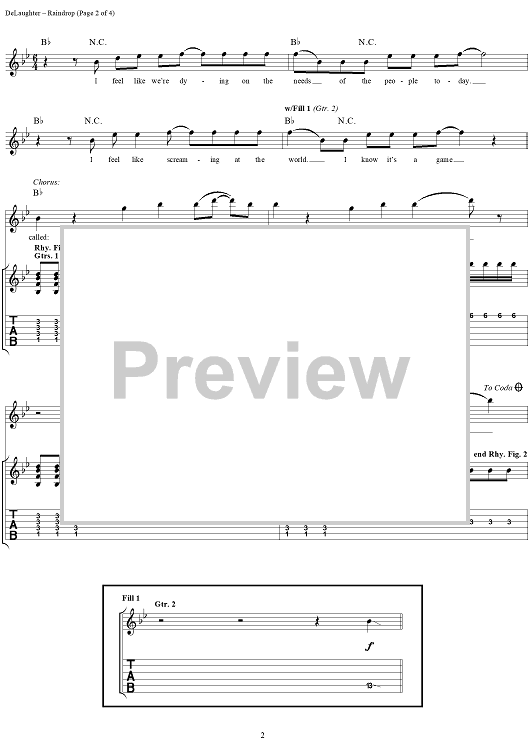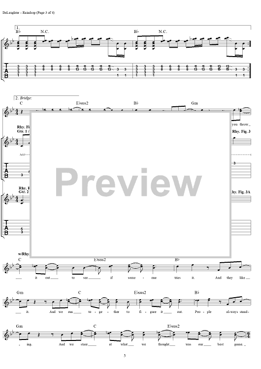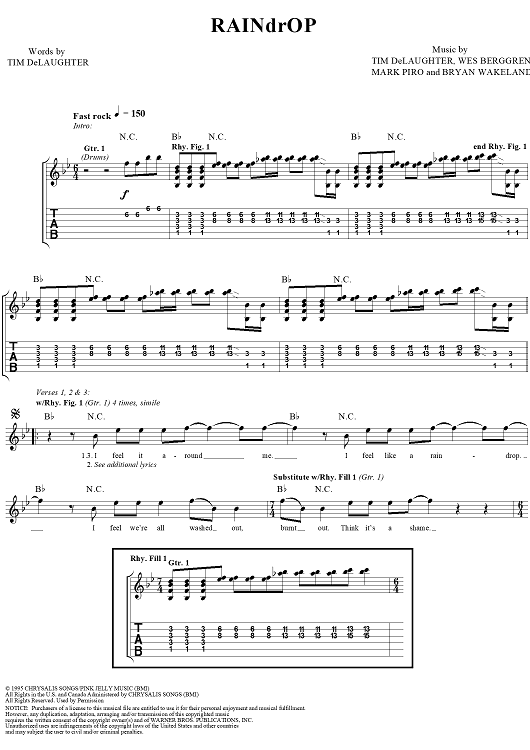 Digital Sheet Music for Raindrop by Wes Berggren, Mark Piro, Bryan Wakeland, Tim DeLaughter, Tripping Daisy scored for Guitar Tab/Vocal; id:120091