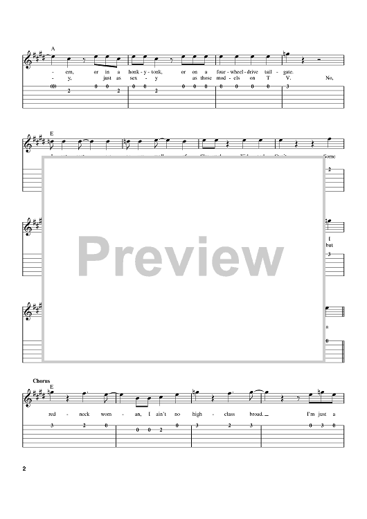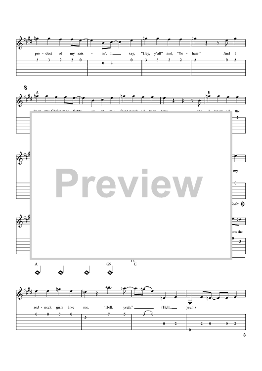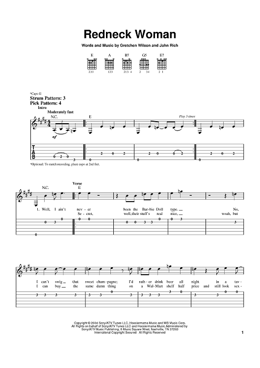 Digital Sheet Music for Redneck Woman by John Rich, Gretchen Wilson scored for Easy Guitar Tab; id:383537