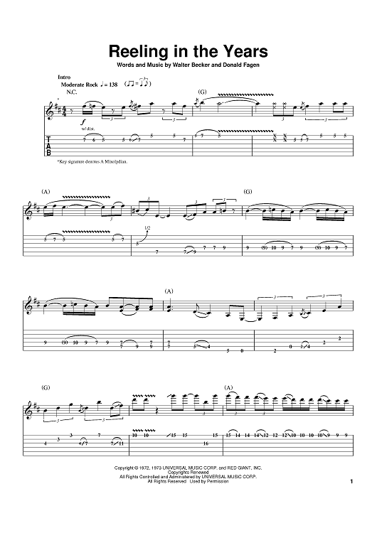 Digital Sheet Music for Reeling In The Years by Steely Dan, Donald Fagen, Walter Becker scored for Guitar Tab; id:383751