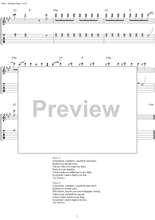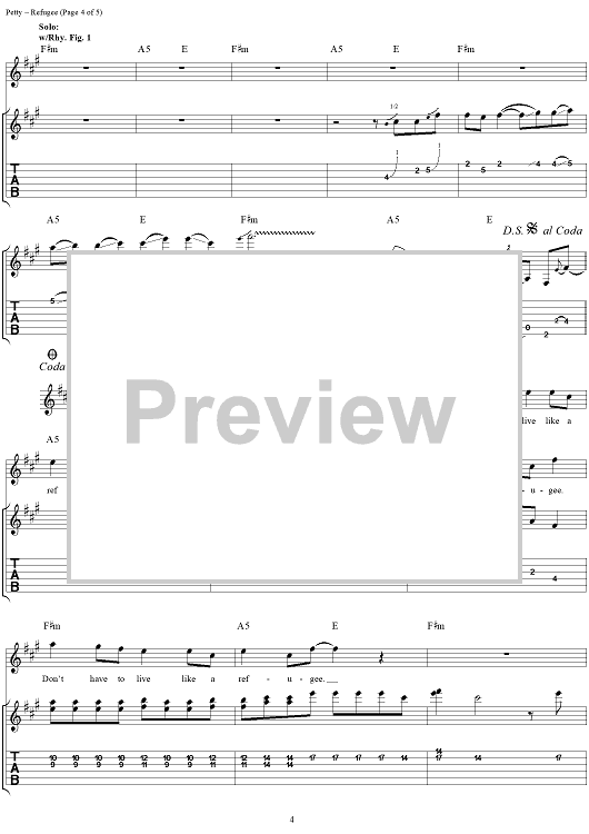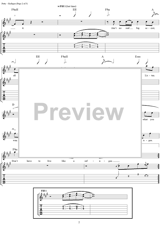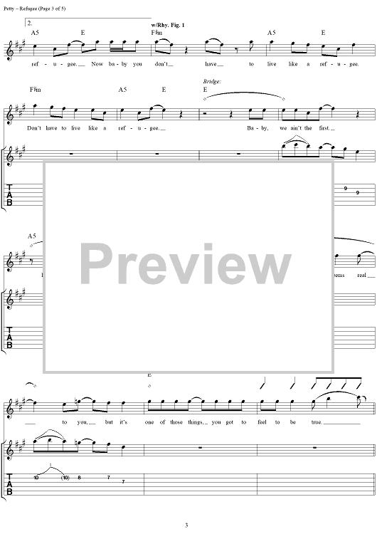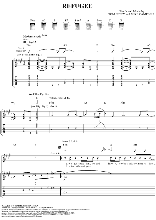Digital Sheet Music for Refugee by Tom Petty, Mike Campbell scored for Guitar Tab/Vocal; id:112231