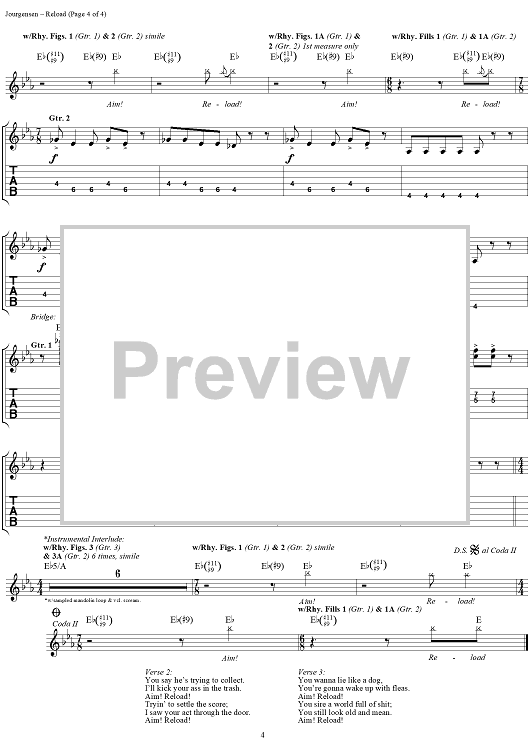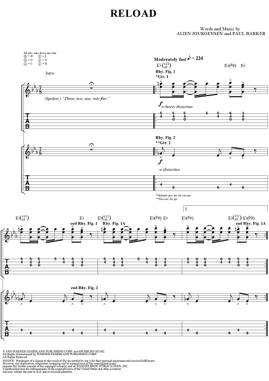 Digital Sheet Music for Reload by Al Jourgensen, Ministry, Paul Barker scored for Guitar Tab/Vocal; id:120864