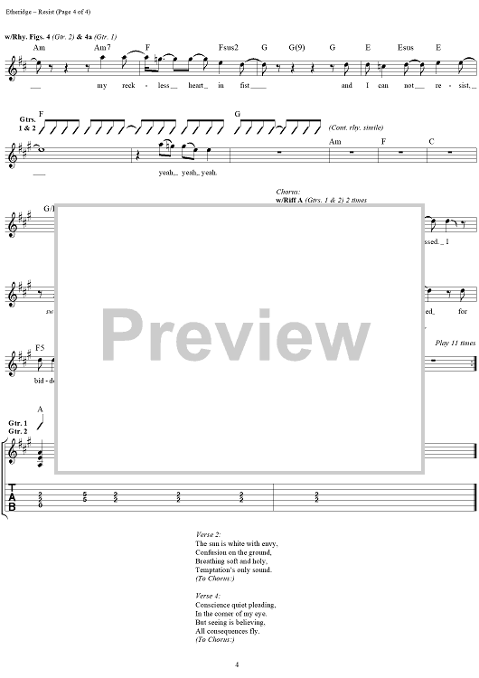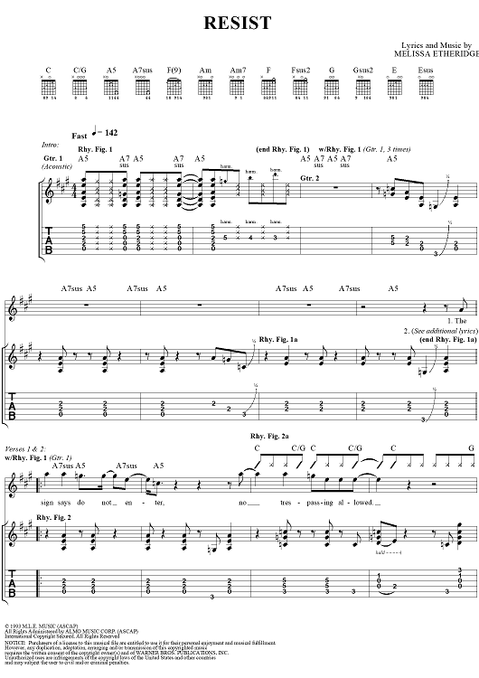 "Resist" Sheet Music by Melissa Etheridge