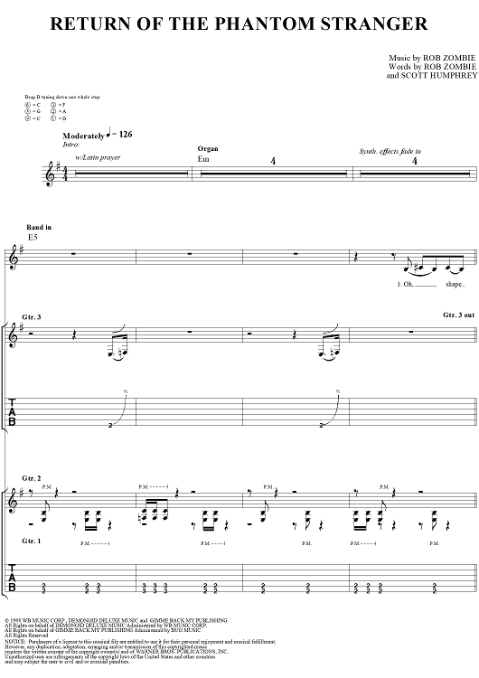 Digital Sheet Music for Return of the Phantom Stranger by Rob Zombie scored for Guitar Tab/Vocal; id:262620