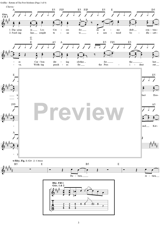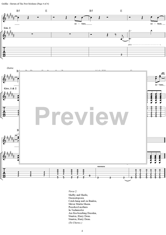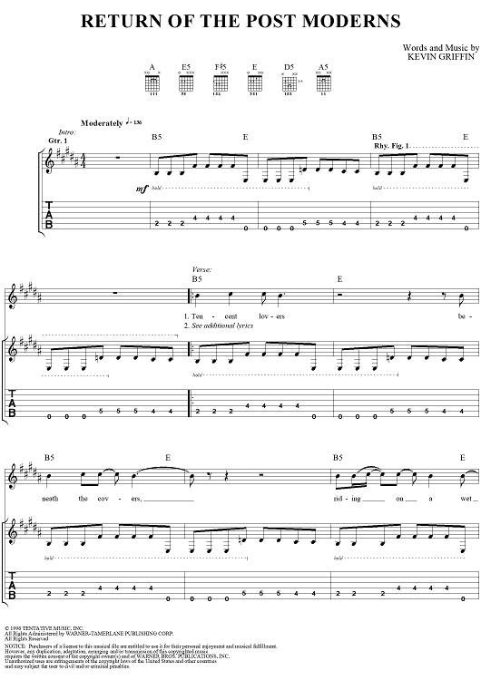Digital Sheet Music for Return of the Post Moderns by Better Than Ezra, Kevin Griffin scored for Guitar Tab/Vocal; id:112345
