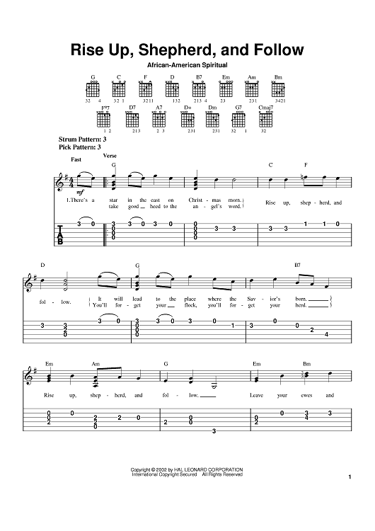 Digital Sheet Music for Rise Up, Shepherd, And Follow by scored for Easy Guitar Tab; id:369589