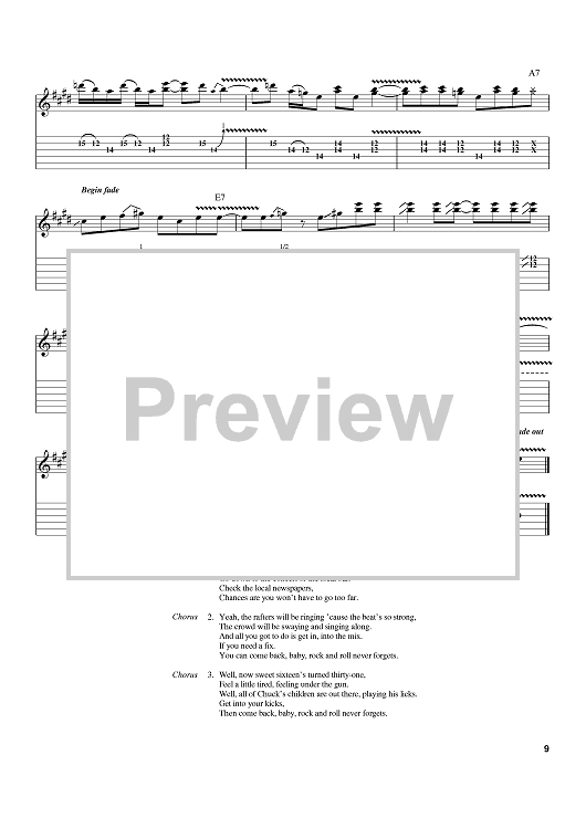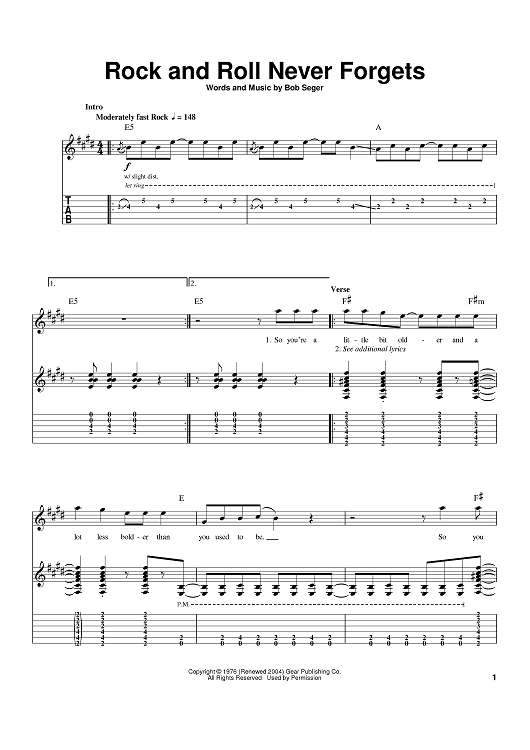 Digital Sheet Music for Rock And Roll Never Forgets by Bob Seger scored for Guitar Tab; id:383780