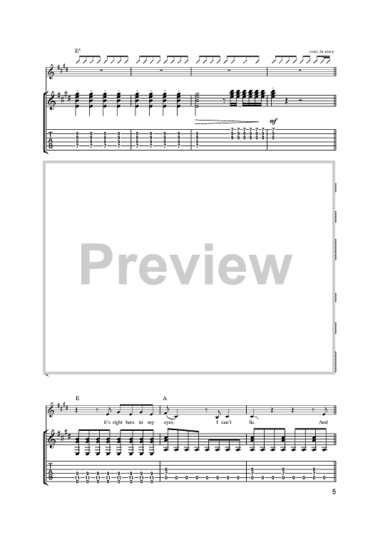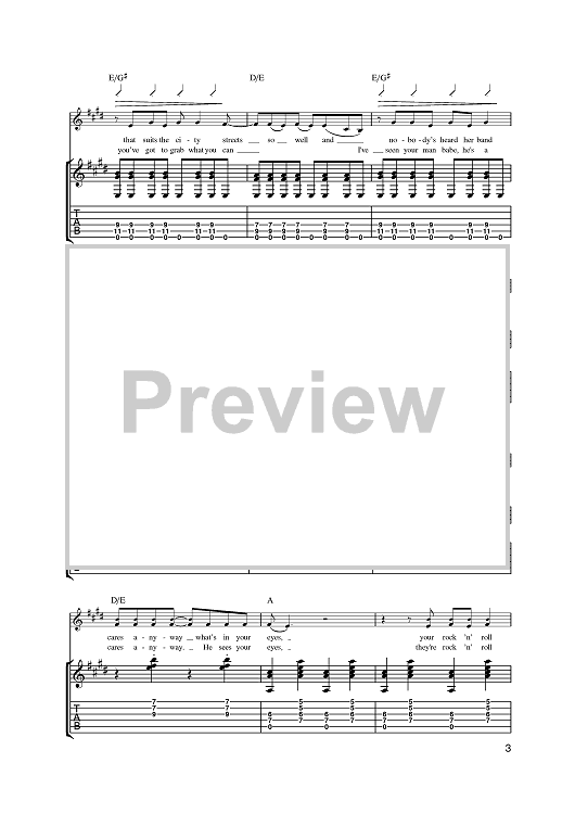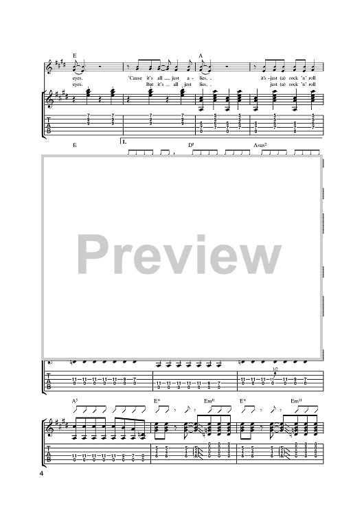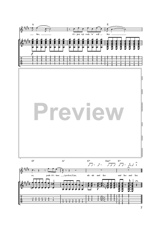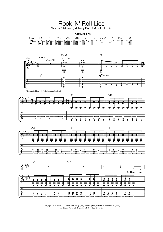 Digital Sheet Music for Rock 'n' Roll Lies by Johnny Borrell, John Fortis, Razorlight scored for Guitar Tab; id:385708