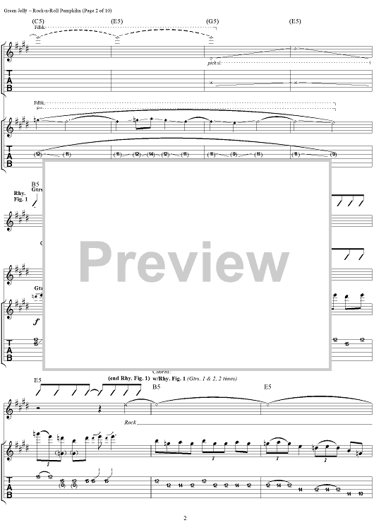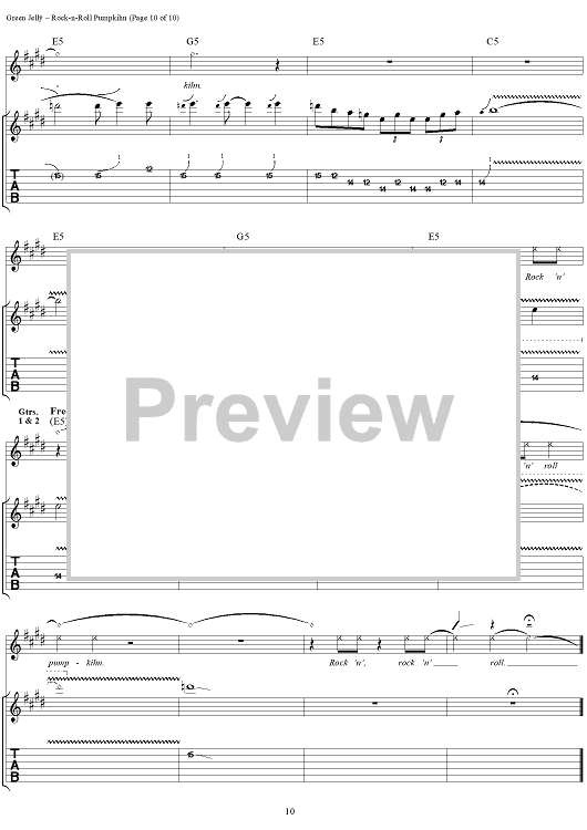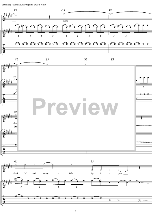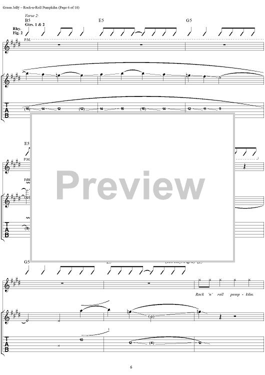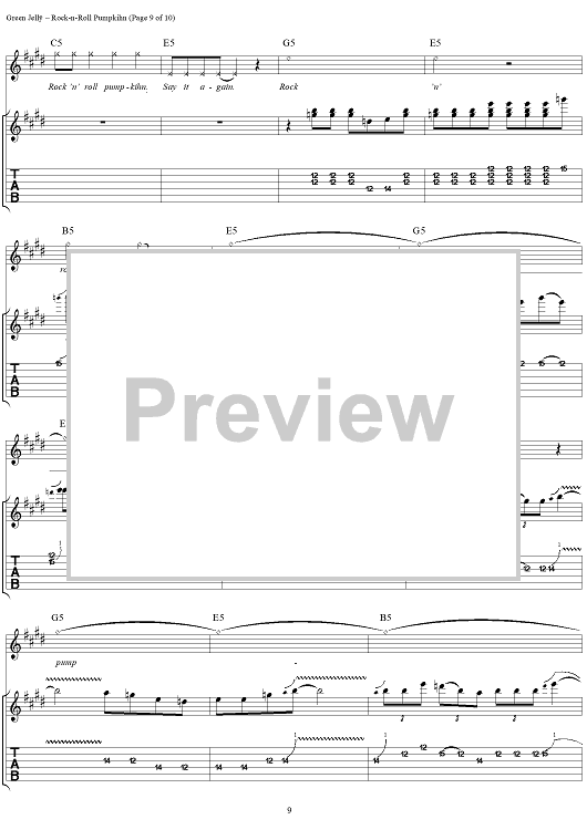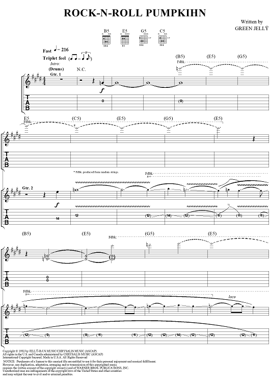 Digital Sheet Music for Rock-N-Roll Pumpkihn by Green Jelly scored for Guitar Tab/Vocal; id:267579