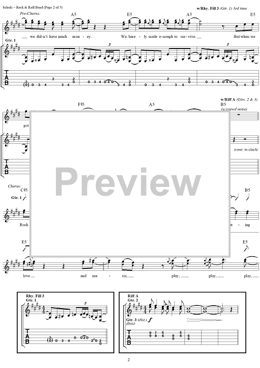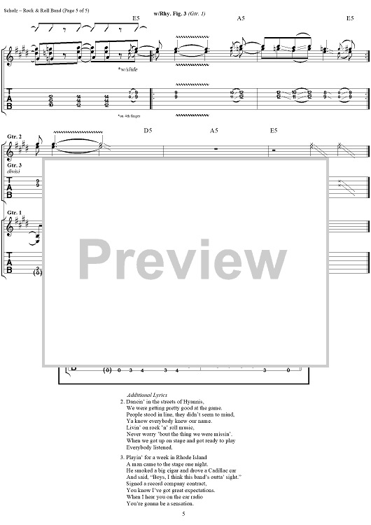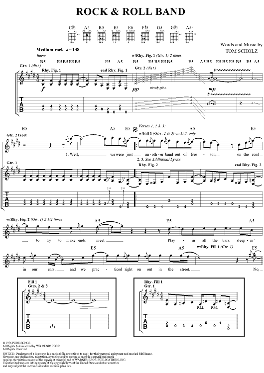 Digital Sheet Music for Rock & Roll Band by Boston, Tom Scholz scored for Guitar Tab/Vocal; id:287216
