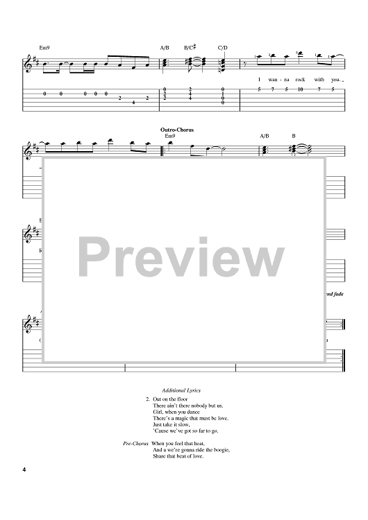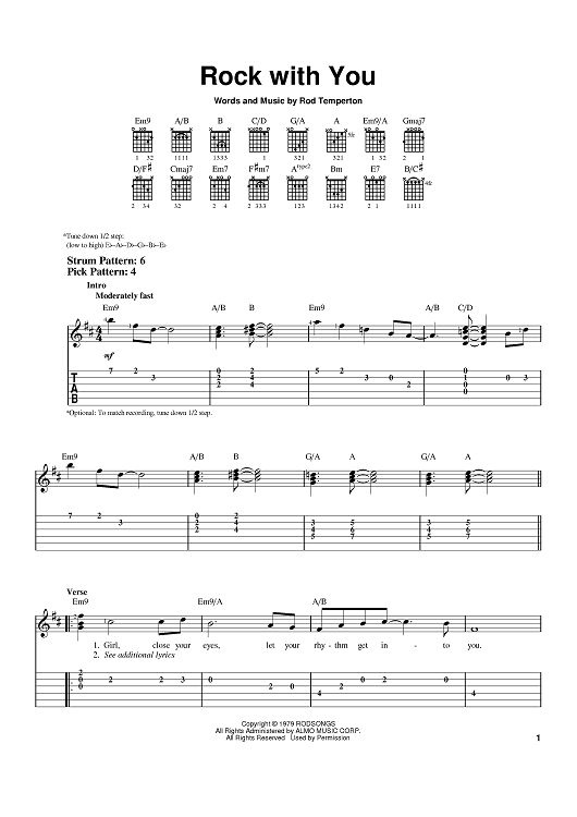 Digital Sheet Music for Rock With You by Michael Jackson, Rod Temperton scored for Easy Guitar Tab; id:387966