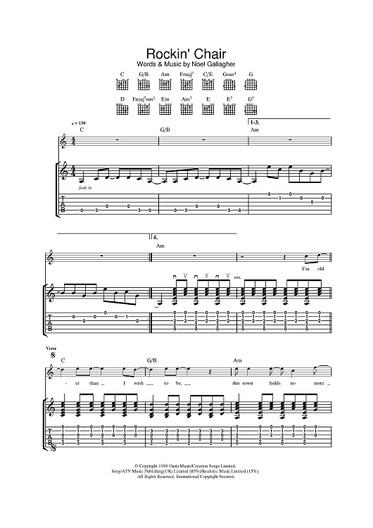 Digital Sheet Music for Rockin' Chair by Noel Gallagher, Oasis scored for Guitar Tab; id:385842