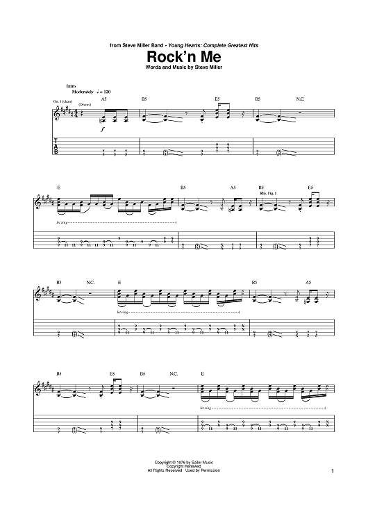 Digital Sheet Music for Rock'n Me by Steve Miller, Steve Miller Band scored for Guitar Tab; id:386230