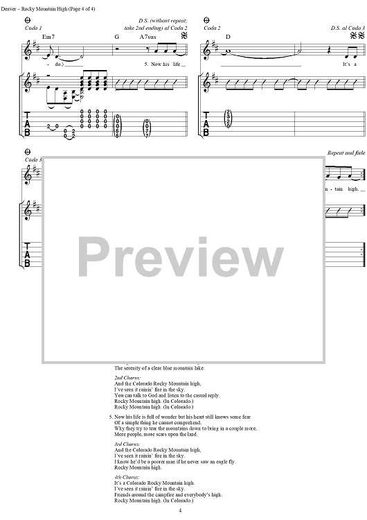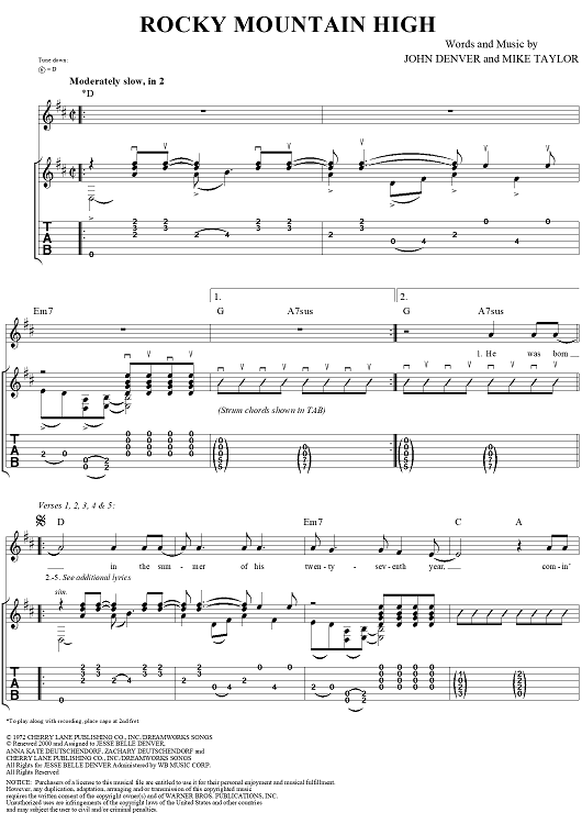 "Rocky Mountain High" Sheet Music by Taffy Nivert
