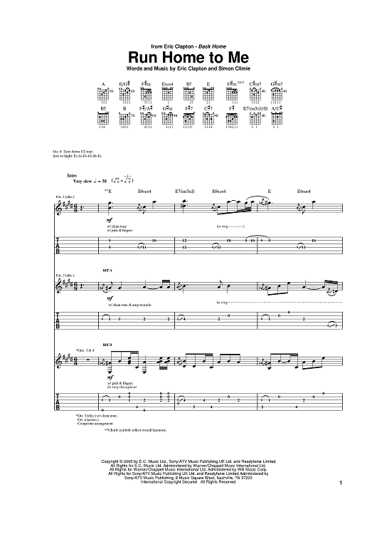 Digital Sheet Music for Run Home To Me by Eric Clapton, Simon Climie scored for Guitar Tab; id:389098