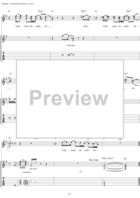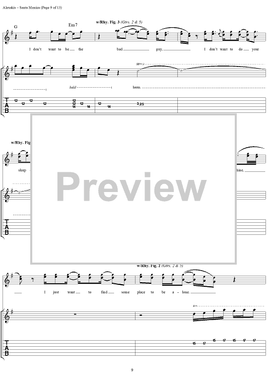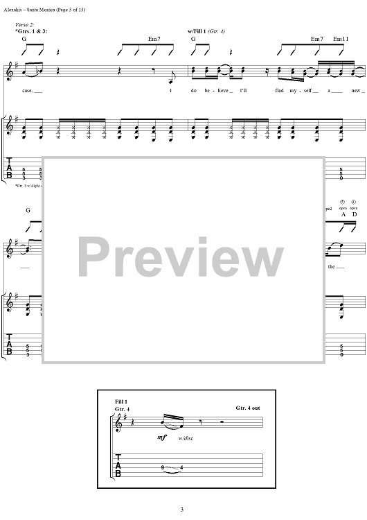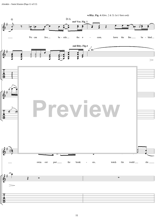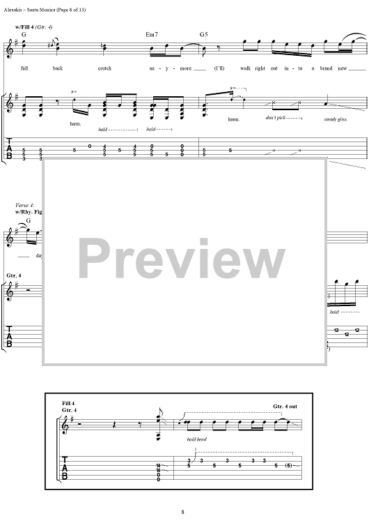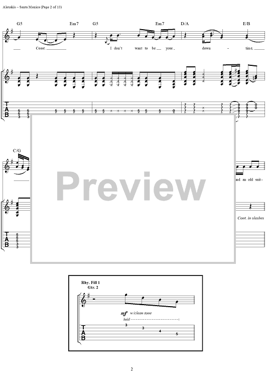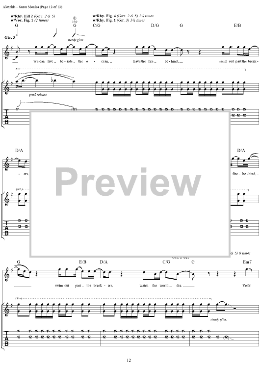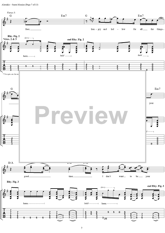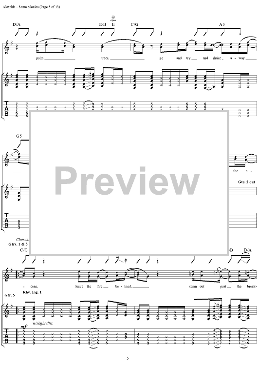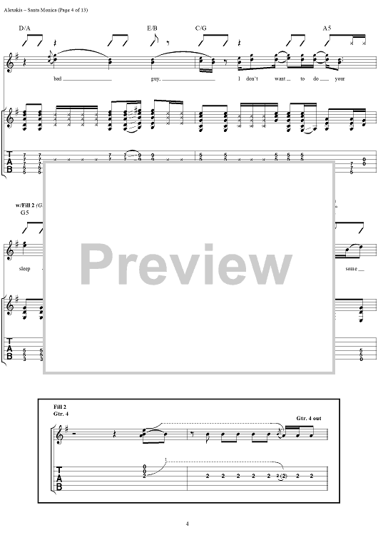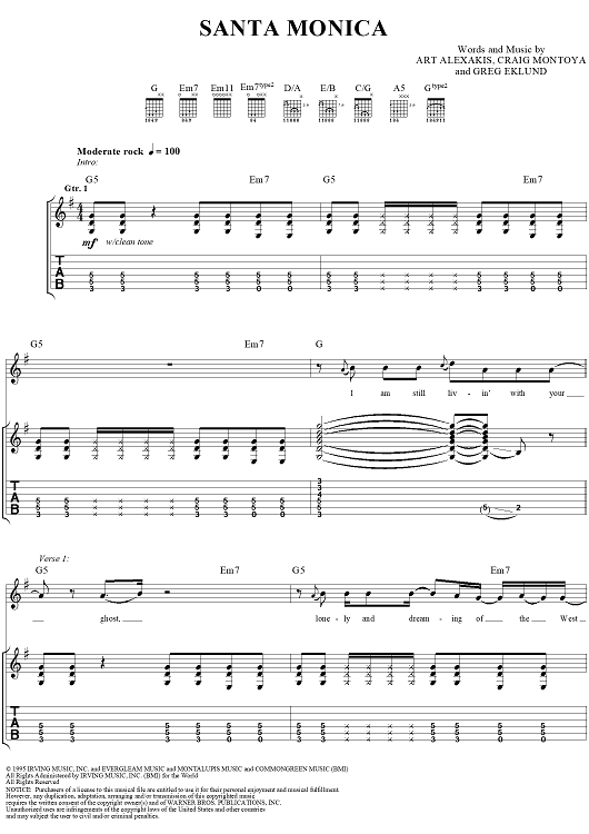 Digital Sheet Music for Santa Monica by Everclear, Art Alexakis, Craig Montoya, Greg Eklund scored for Guitar Tab/Vocal; id:241200