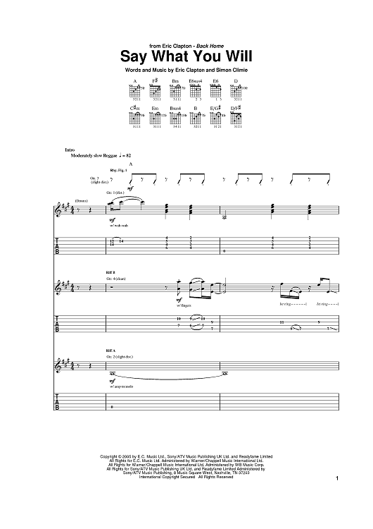 Digital Sheet Music for Say What You Will by Eric Clapton, Simon Climie scored for Guitar Tab; id:389095