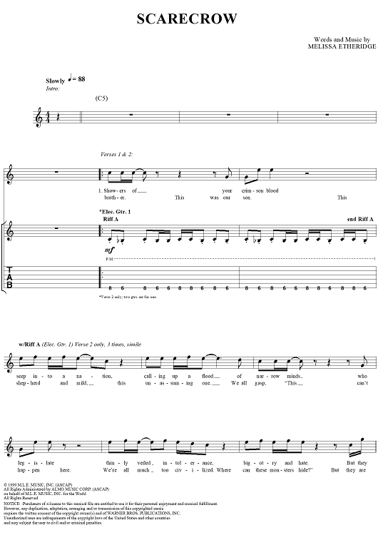 "Scarecrow" Sheet Music by Melissa Etheridge