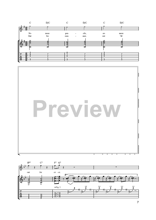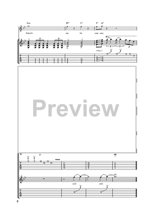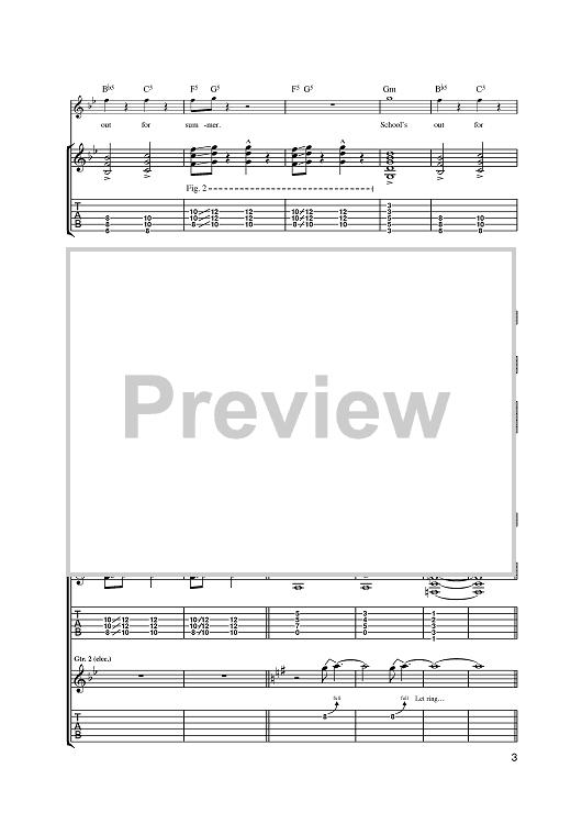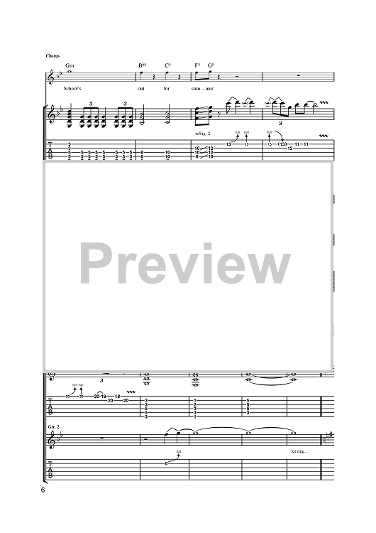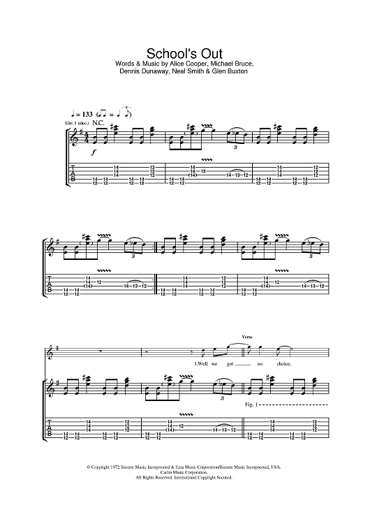 Digital Sheet Music for School's Out by Alice Cooper, Neal Smith, Michael Bruce, Glen Buxton, Dennis Dunaway scored for Guitar Tab; id:388325