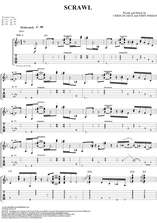 Digital Sheet Music for Scrawl by Chris Duarte, John Jordan scored for Guitar Tab/Vocal; id:270908