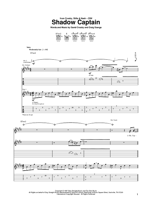 Digital Sheet Music for Shadow Captain by David Crosby, Craig Doerge, Crosby, Stills, Nash & Young scored for Guitar Tab; id:383849