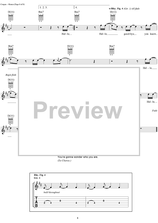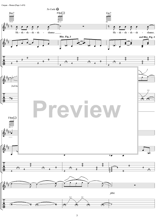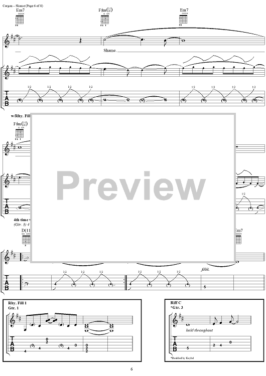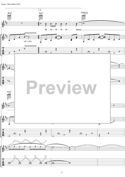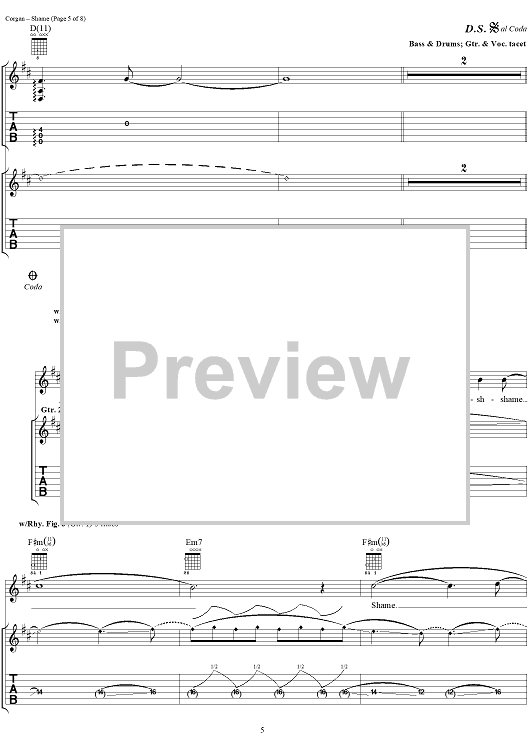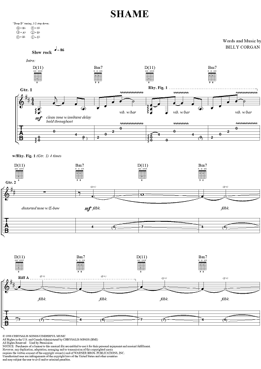 Digital Sheet Music for Shame by Billy Corgan, Smashing Pumpkins scored for Guitar Tab/Vocal; id:272305