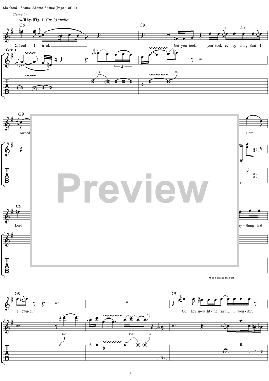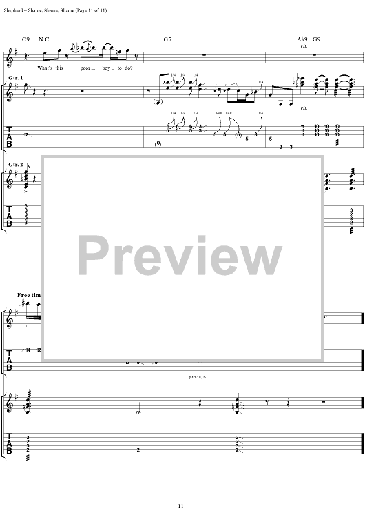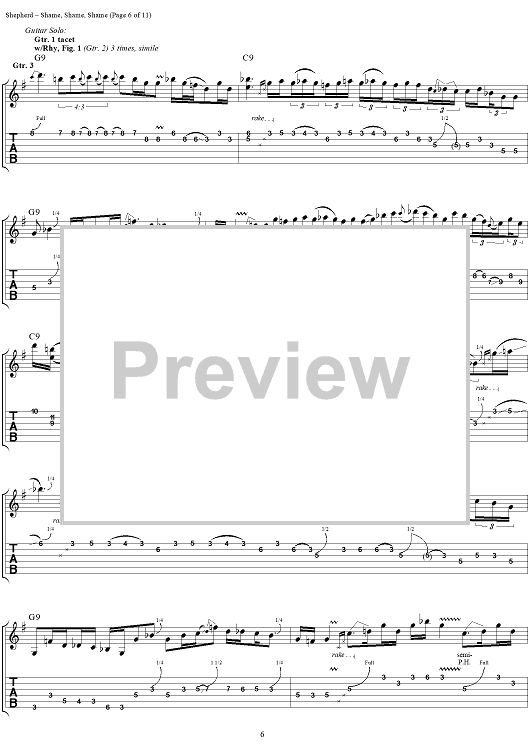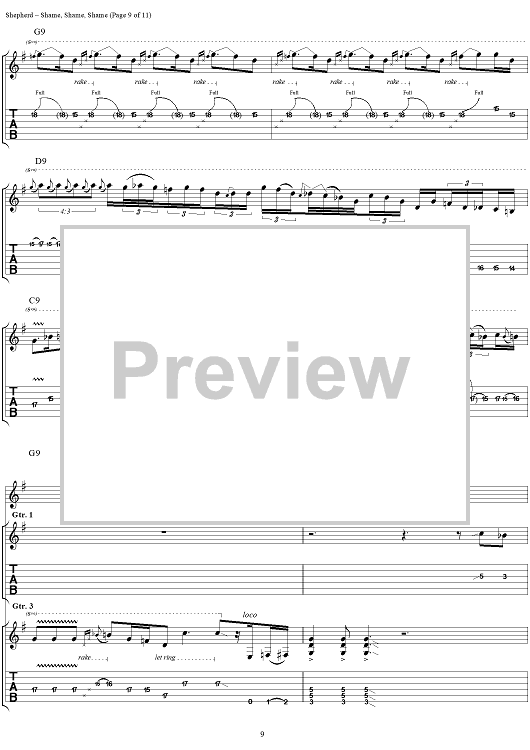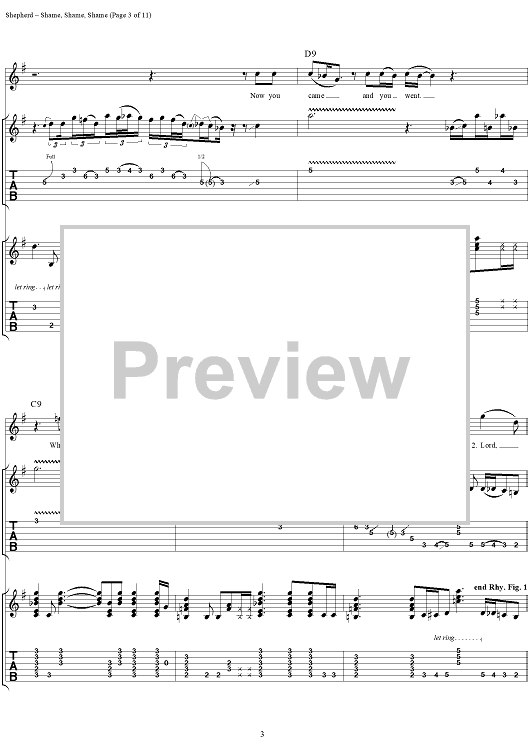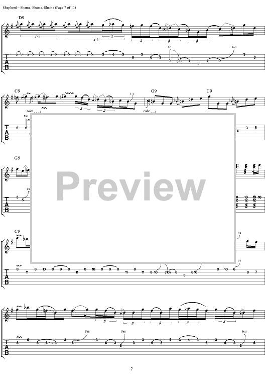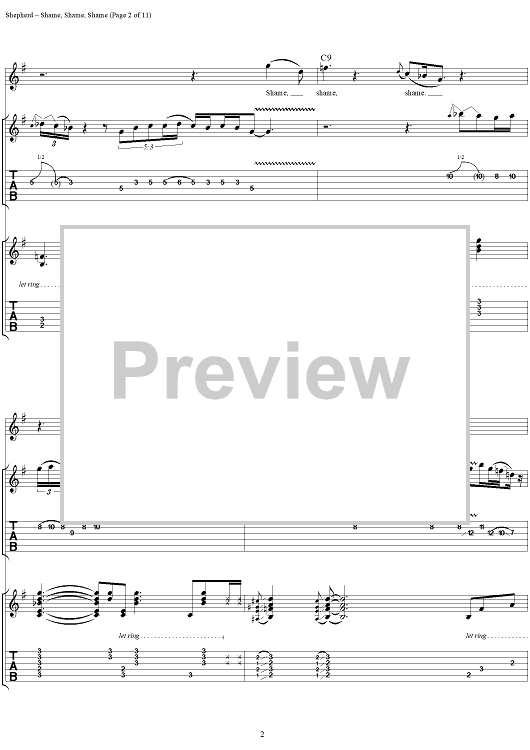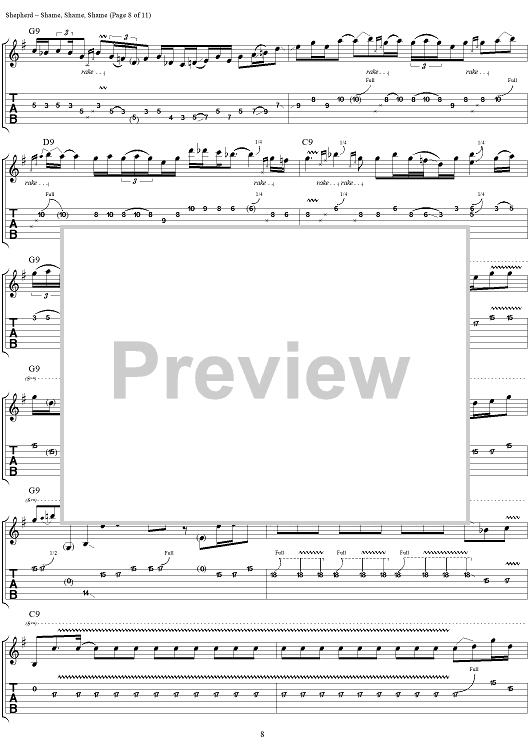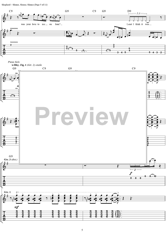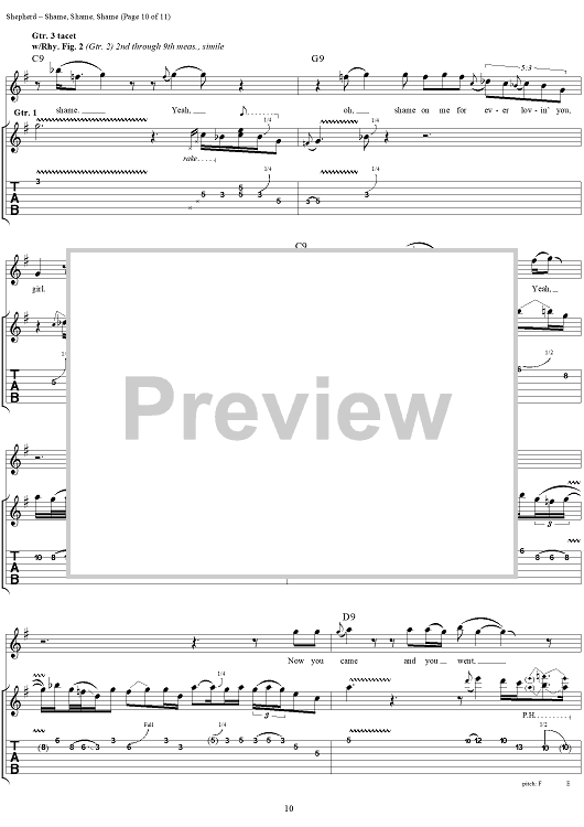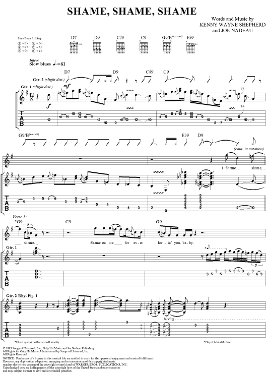 "Shame, Shame, Shame" Sheet Music by Kenny Wayne Shepherd Band