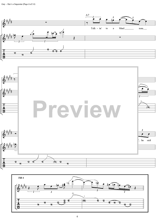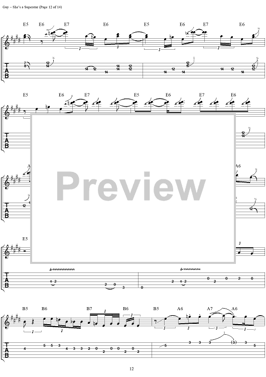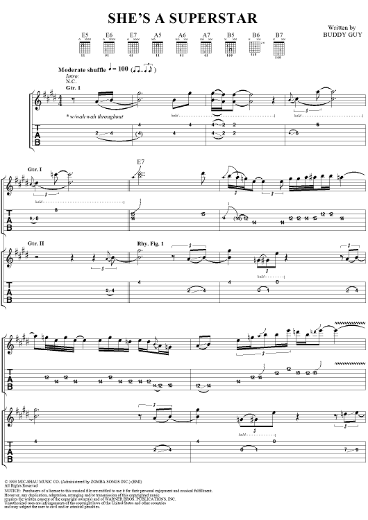 Digital Sheet Music for She's a Superstar by Buddy Guy scored for Guitar Tab/Vocal; id:113957