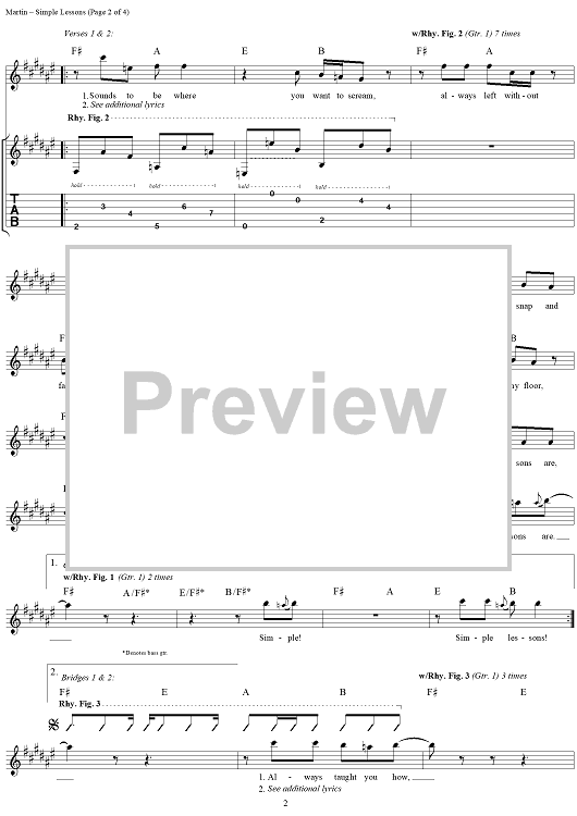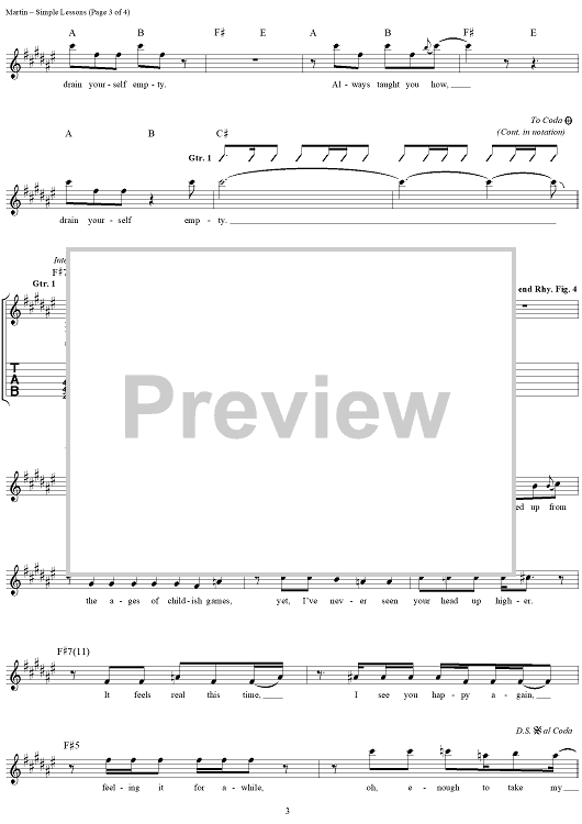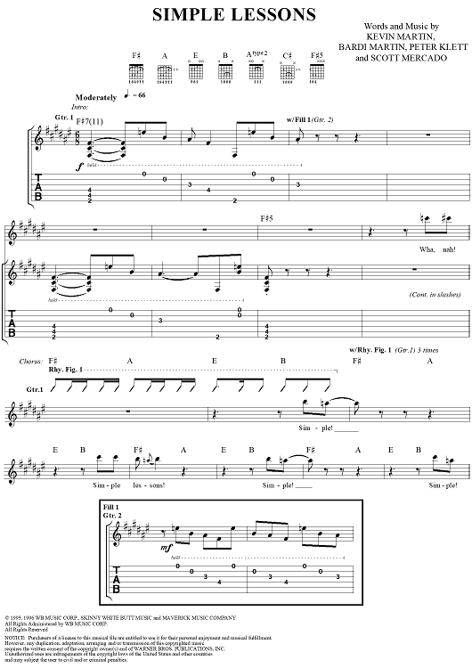 Digital Sheet Music for Simple Lessons by Kevin Martin, Bardi Martin, Peter Klett, Scott Mercado, Candlebox scored for Guitar Tab/Vocal; id:112232