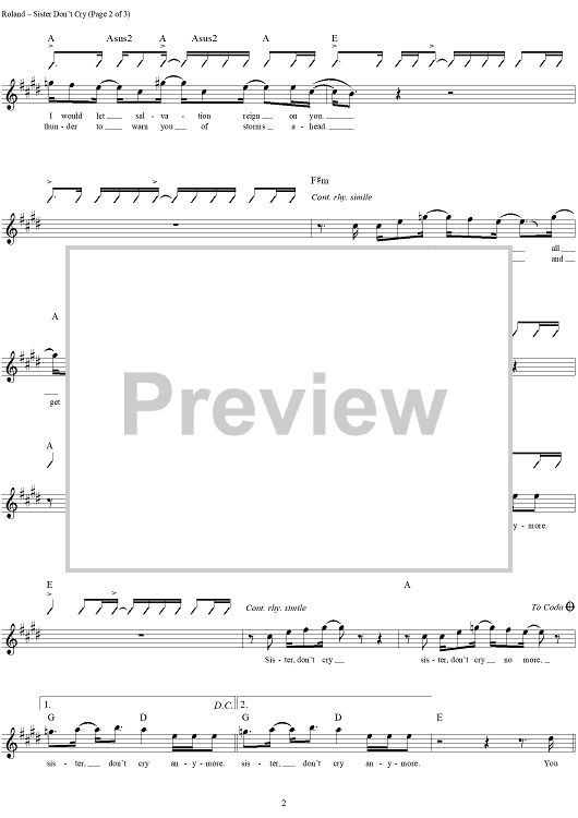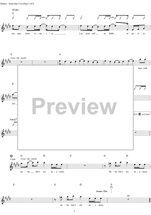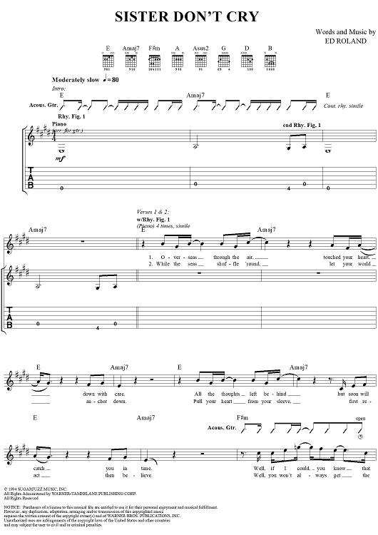Digital Sheet Music for Sister Don't Cry by Collective Soul, Ed Roland scored for Guitar Tab/Vocal; id:287046