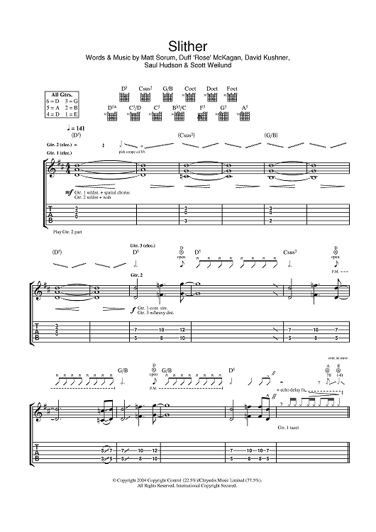 Digital Sheet Music for Slither by Scott Weiland, Slash, Dave Kushner, Duff McKagan, Matt Sorum, Velvet Revolver scored for Guitar Tab; id:384326