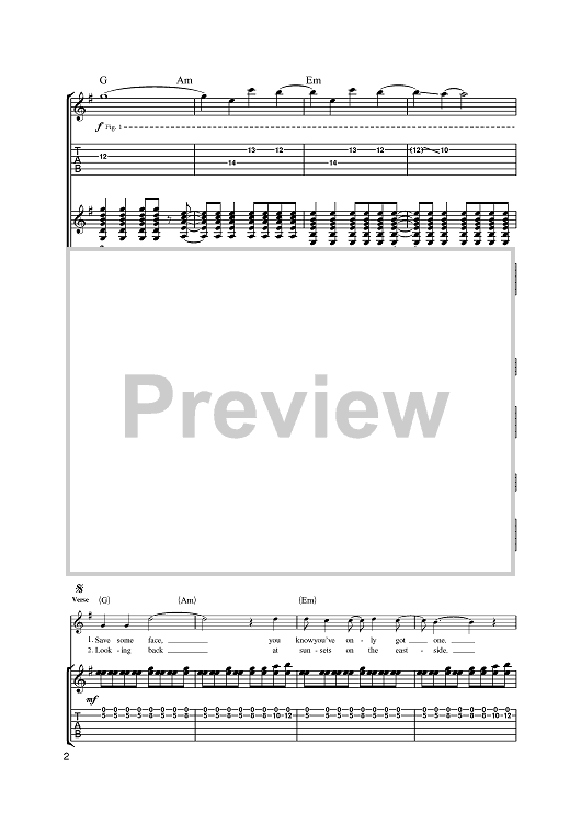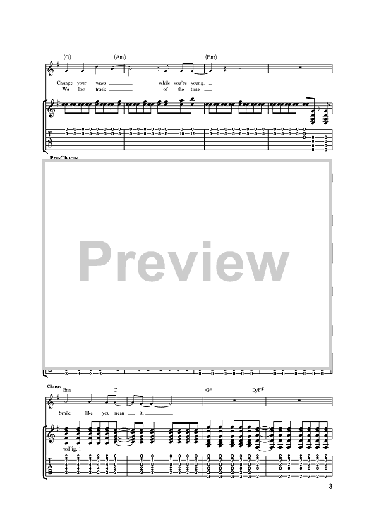 Digital Sheet Music for Smile Like You Mean It by Brandon Flowers, Dave Keuning, The Killers, Mark Stoermer, Ronnie Vannucci Jr. scored for Guitar Tab; id:387157