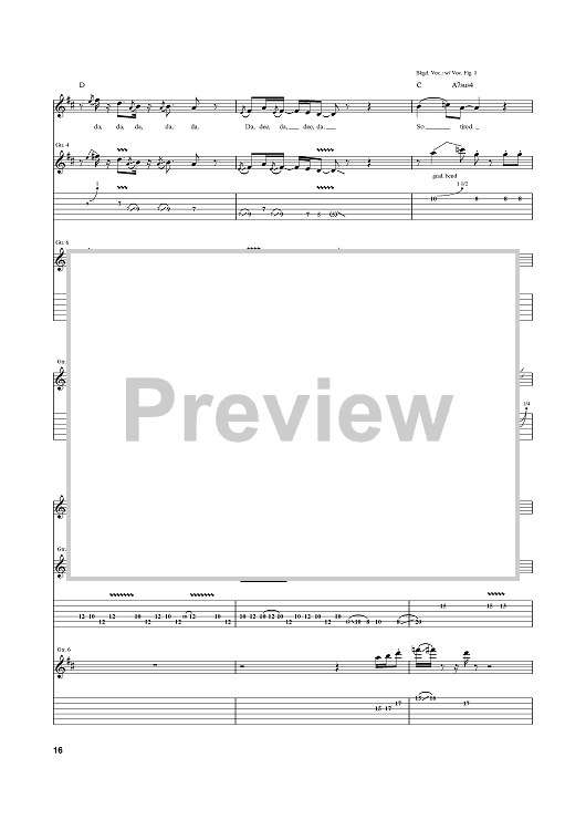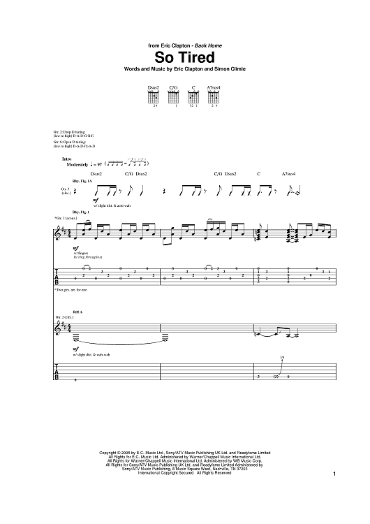 Digital Sheet Music for So Tired by Eric Clapton, Simon Climie scored for Guitar Tab; id:389094